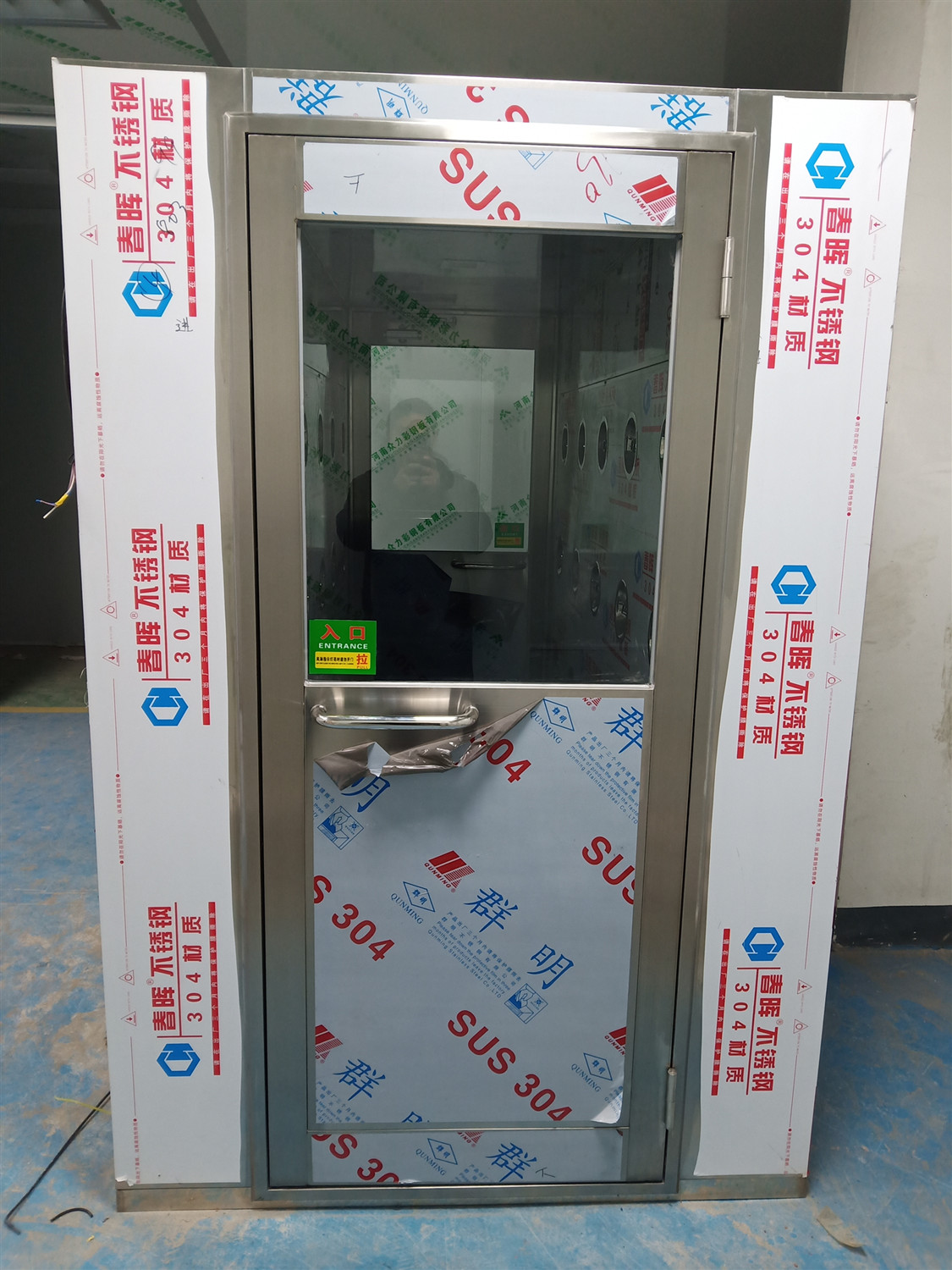2、 風淋室處于吹淋狀態時,嚴禁開門(直到吹淋停止)。遇緊急情況,可按急停開關停止吹淋后開門。