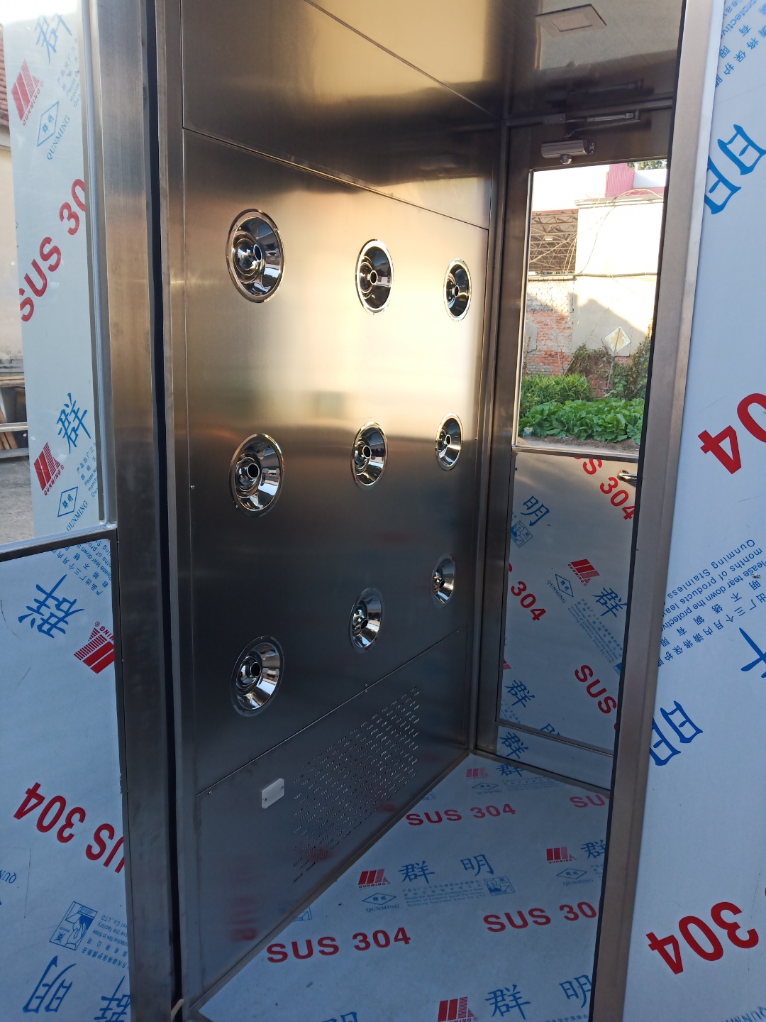 風(fēng)淋室是人進(jìn)入潔凈室所必需的通道,它可以減少人進(jìn)出潔凈室所帶來的污染問題,減少由于人/貨進(jìn)出帶來的大量塵埃粒子由潔凈室的入口處安裝功能齊全的“氣閘室”可以減少空氣污染微粒的數(shù)量,當(dāng)人/貨通過風(fēng)淋室時,污染微粒被經(jīng)過高效過濾的高度潔凈空氣射掉,25m/s以上的高風(fēng)速確保了有效的噴射和飄移微粒經(jīng)過初效和高效兩級過濾器基本過濾掉。